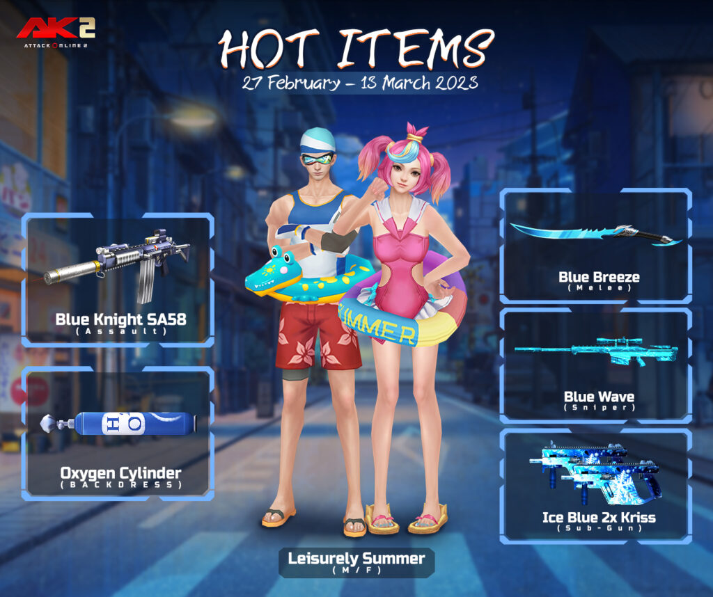ចាប់ពី ថ្ងៃទី27 ខែកុម្ភ ដល់ ថ្ងៃទី12 ខែមិនា ឆ្នាំ2023 បន្ទាប់ពីការ update នូវ version 2.1.6.724 ទៅ 2.1.6.725 រួចរាល់ហើយអ្នកកម្សាន្ដទាំងអស់អាចចំណាយ AK Gold ដើម្បីទទួលបានសម្ភារៈពិសេសៗដូចខាងក្រោម៖