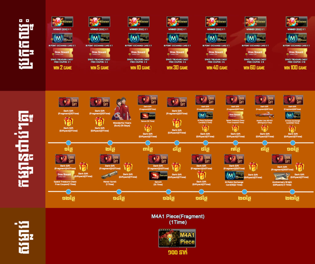 3. 600 AK Gold ទទួលបាន lottery Coupon Deluxe Pack*2 + Permanent Asura Series Weapon(Optional Pack) *1+ Eternal Oath(Fragment)*100 + Dark Gift(Fragment) *100
