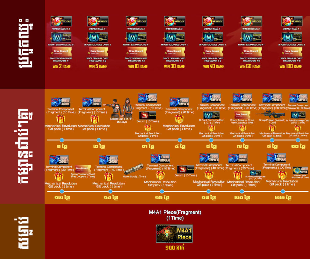 ចាប់ពី ថ្ងៃទី25 កញ្ញា ឆ្នាំ2023 ដល់ថ្ងៃទី22 តុលា ឆ្នាំ2023 បន្ទាប់ពីការ update នូវ Version 2.1.6.751 ទៅ 2.1.6.752 រួចរាល់ហើយអ្នកកម្សាន្ដទាំងអស់អាចបញ្ចូល AK Gold ដើម្បីទទួលបានសព្វាវុធ និងសម្ភារៈពិសេសៗដូចខាងក្រោម៖