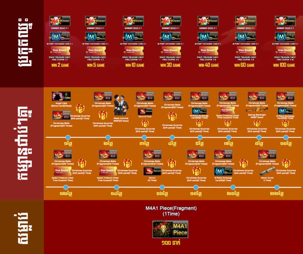 ចាប់ពី ថ្ងៃទី 18 ខែធ្នូ ឆ្នាំ 2023 ដល់ ថ្ងៃទី 14 ខែមករា ឆ្នាំ 2024 អ្នកកម្សាន្ដទាំងអស់គ្រាន់តែចូលកម្សាន្ដនឹងទទួលបានរង្វាន់ដូចខាងក្រោម៖