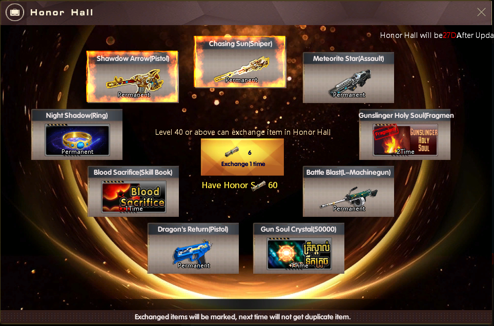 ចាប់ពី ថ្ងៃទី 11 ខែមីនា ឆ្នាំ 2024 ដល់ ថ្ងៃទី 07 ខែមេសា ឆ្នាំ 2024 បន្ទាប់ពីការ Update នូវ Version 2.1.6.766 ទៅ 2.1.6.767 រួចរាល់ហើយអ្នកកម្សាន្ដទាំងអស់អាចបញ្ចូល AK Gold ដើម្បីទទួលបានសព្វាវុធ និងសម្ភារៈពិសេសៗដូចខាងក្រោម៖