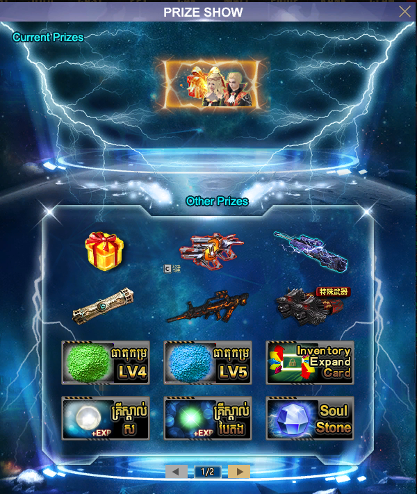 Equipment storage(Gift Pack) Open Must Get 1 New equipment(Fragment)、2 Gunslinger Holy Soul(Fragment),And get one of the following items randomly: