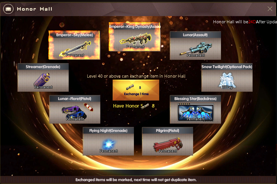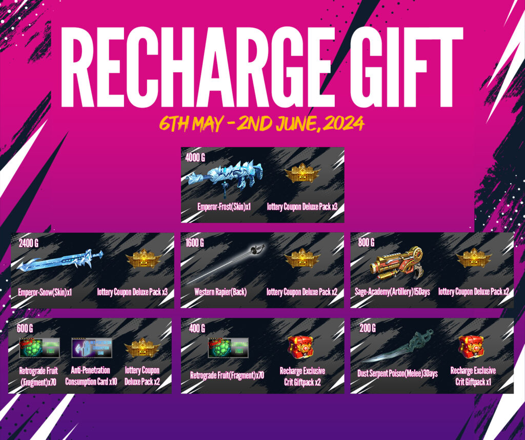 ចាប់ពី ថ្ងៃទី 06 ខែឧសភា ឆ្នាំ 2024 ដល់ ថ្ងៃទី 02 ខែមិថុនា ឆ្នាំ 2024 បន្ទាប់ពីការ Update នូវ Version 2.1.6.770 ទៅ 2.1.6.771 រួចរាល់ហើយអ្នកកម្សាន្ដទាំងអស់អាចបញ្ចូល AK Gold ដើម្បីទទួលបានសព្វាវុធ និងសម្ភារៈពិសេសៗដូចខាងក្រោម៖