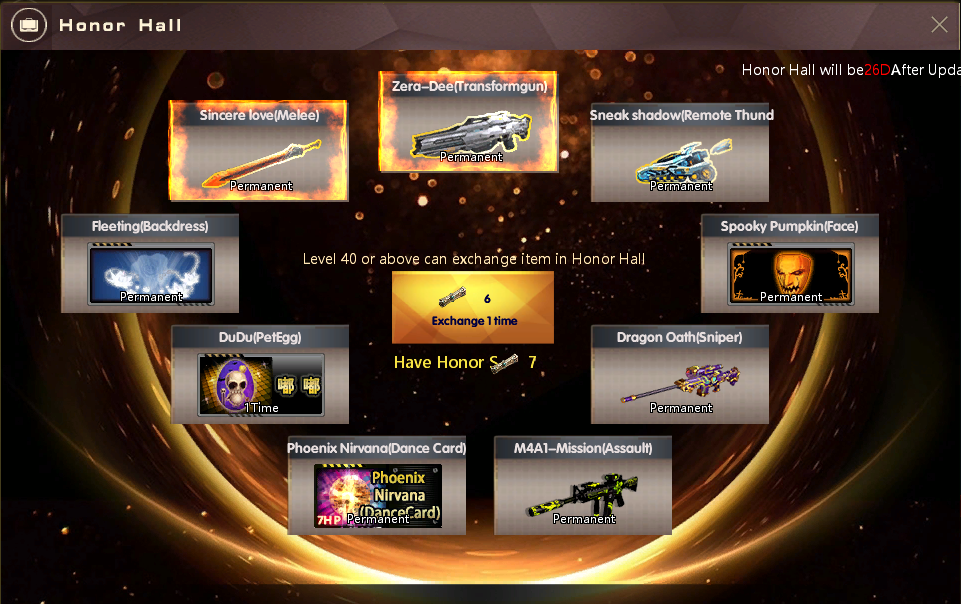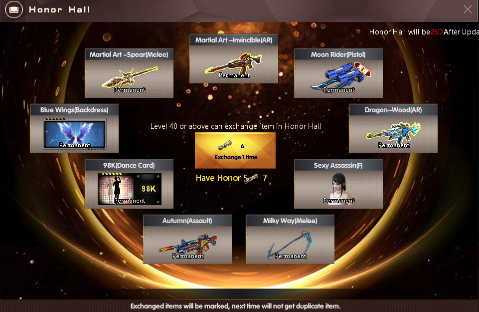 • [Daily Kill Reward] Kill 30 people in all PVP modes every day – Reward: 1 Obsidian (gift pack) + 20 Celestial(Fragment)+ 1 Honor Scroll