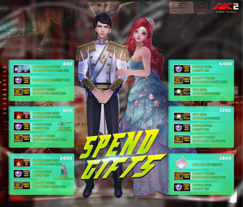 ចាប់ពី ថ្ងៃទី03 ខែវិច្ឆិកា ឆ្នាំ2025 ដល់ ថ្ងៃទី 16 ខែវិច្ឆិកា ឆ្នាំ2025 បន្ទាប់ពីការ Update នូវ 3.1.0.108 ទៅ 3.1.0.109 រួចរាល់ហើយអ្នកកម្សាន្ដទាំងអស់អាចចំណាយ AK Gold ដើម្បីទទួលបានសម្ភារៈពិសេសៗដូចខាងក្រោម៖