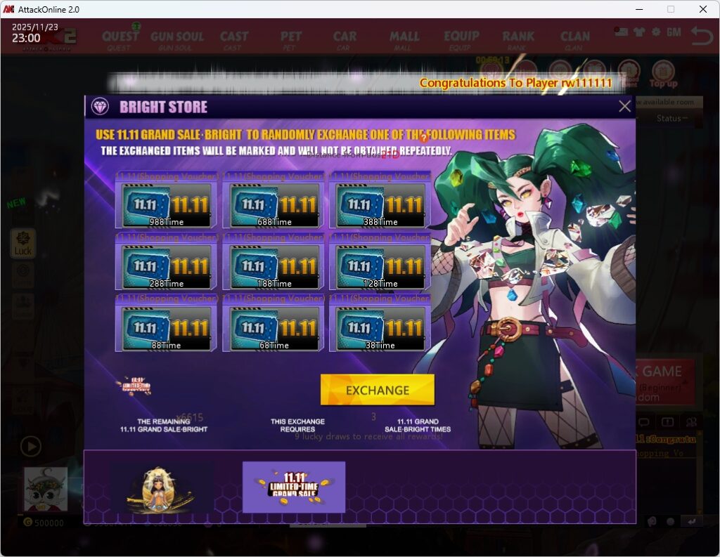 • From November 23rd to December 14th at 24:00, completing a total of 3 World Boss battles will reward you with 2 Honor Scrolls + 10 Lucky Coins.