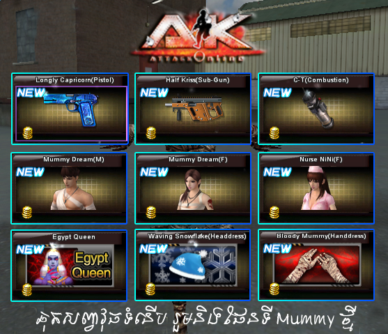 2. Queen គឺមានសមត្ថភាពខ្ពស់ អាចបំបាំងកាយក្នុងការប្រយុទ្ធជាមួយសត្រូវ។នៅក្នុង Version ថ្មីនេះដែរក៏មានបន្ថែមជូននូវផែនទីថ្មី២ ទៀតសម្រាប់វគ្គ Mummy គឺ Pharaoh Temple 2 និង Aden Arms Library ។