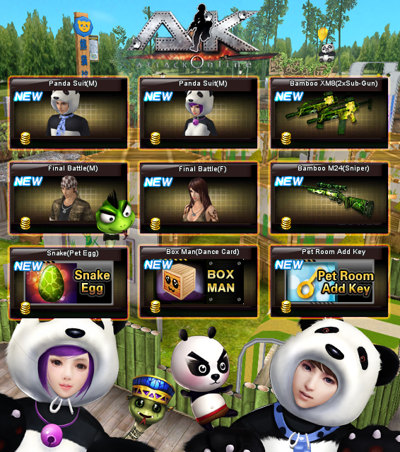 សួនកំសាន្ដខ្លាឃ្មុំ Panda ជាទីកន្លែងដ៏ស្រស់បំព្រងគួរឲ្យចង់កម្សាន្តជាមួយមិត្តភក្តីនឹងក្រុមគ្រួសារ តែឥឡូវនេះបានមកដល់ក្នុងសេវាកម្សាន្ត AK Online ហើយនោះគឺ Panda Park ដែលផ្តល់ភាពរីករាយដល់អ្នកកម្សាន្តបំបាត់ភាពសៅម្មង់ ព្រមទាំងទទួលអារម្មណ៍សង់ទីម៉ង់ទៀតផង។ពិសេសជាងនេះទៅទៀតនោះគឺសព្វាវុធទំនើបៗអស្ចារ្យនិងសំភារៈគួរឲ្យចាប់អារម្មណ៍ រួមទាំងសំលៀកបំពាក់ដ៏ស្រស់ស្អាតជាច្រើន។ ចំពោះការ update version ថ្មីនេះ និងធ្វើឡើងក្នុង ថ្ងៃចន្ទ័ទី០៦ ខែឧសភា ឆ្នាំ២០១៣ នេះហើយ។